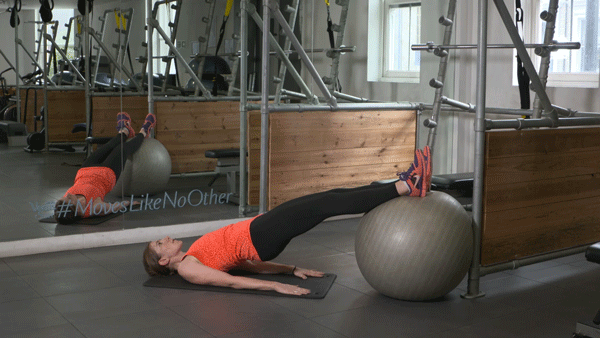 - Acostate en una colchoneta con los brazos a los lados y poné las piernas en una pelota de streching.